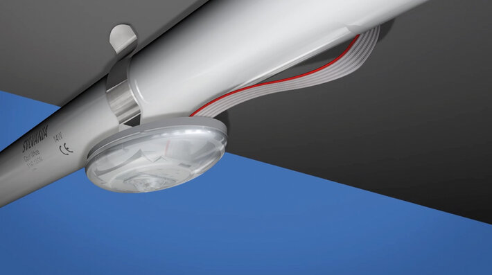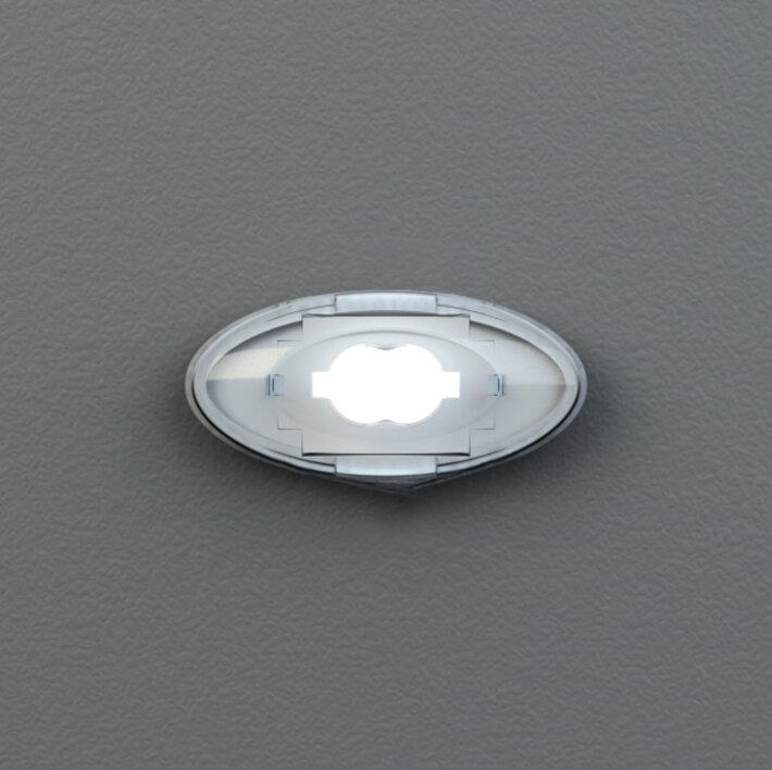 Kleine LED-Sicherheitsleuchte, zur Ein- und Aufbaubaumontage, mit großer Wirkung. Die geringe Abmessung und das transparente Gehäusematerial ermöglichen eine absolut unauffällige Montage.