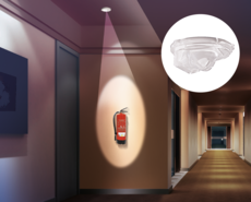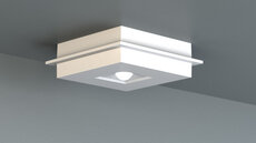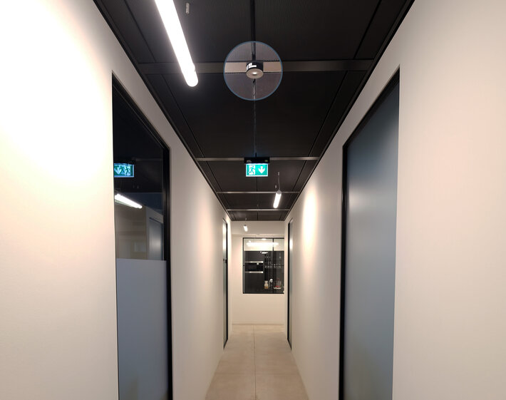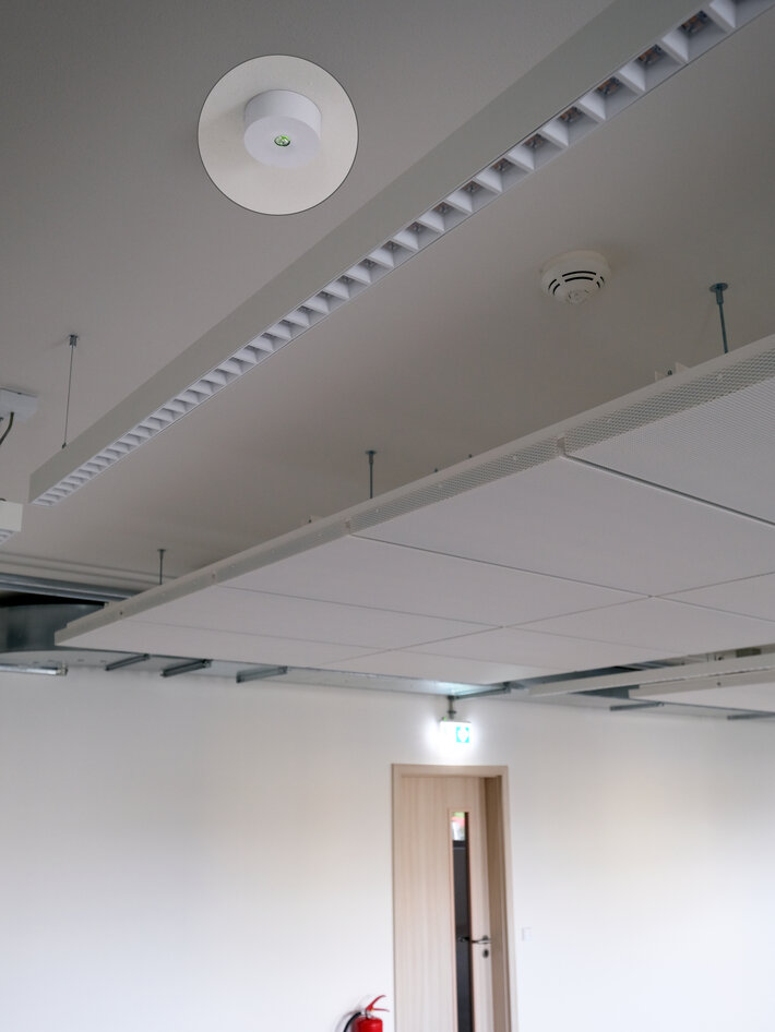 Dezente Kunststoff-Sicherheitsleuchte zum Deckenanbau *. Die runde Sicherheitsleuchte, die sich dem Design der Decke anpasst.