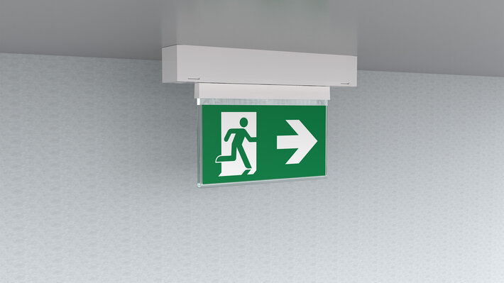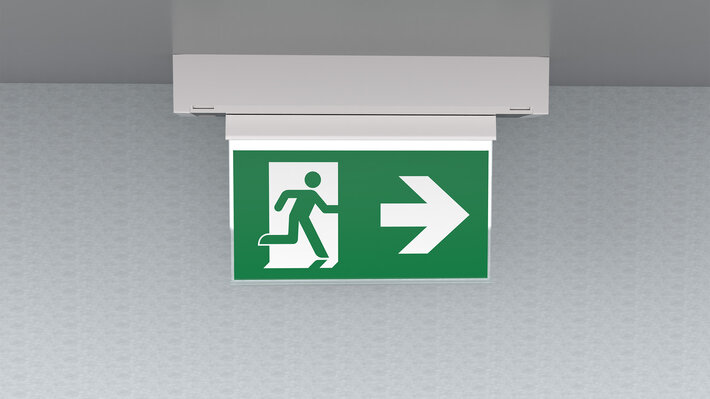 Automatische Überwachung der Sicherheitsleuchte mit SelfControl. Display-Scheibenleuchte mit integrierter Lichtverteilung zur gleichmäßgien Ausleuchtung des Piktogrammes. Geeignet zur ein- oder zweiseitigen Beschriftung. Planungssicherheit ist durch werkzeuglosen, variablen Einsatz der Piktogramme vor Ort gegeben. Ein Piktogrammset entsprechend DIN ISO 7010 (Pfeil rechts, links, oben und unten) ist standardmäßig im Lieferumfang enthalten. Die Universalmontage beinhaltet die Möglichkeit die Leuchte wahlweise als Wand- oder Deckenanbau zu montieren.