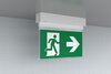 Automatische Überwachung der Sicherheitsleuchte mit SelfControl. Display-Scheibenleuchte mit integrierter Lichtverteilung zur gleichmäßgien Ausleuchtung des Piktogrammes. Geeignet zur ein- oder zweiseitigen Beschriftung. Planungssicherheit ist durch werkzeuglosen, variablen Einsatz der Piktogramme vor Ort gegeben. Ein Piktogrammset entsprechend DIN ISO 7010 (Pfeil rechts, links, oben und unten) ist standardmäßig im Lieferumfang enthalten. Die Universalmontage beinhaltet die Möglichkeit die Leuchte wahlweise als Wand- oder Deckenanbau zu montieren.
