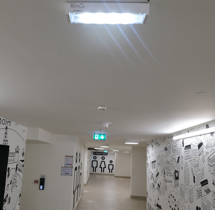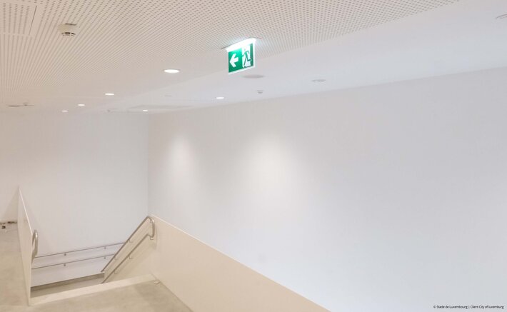 - Minimale Beleuchtungsstärke auf der halben Rettungswegbreite: 0.50 lx