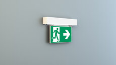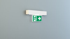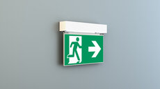 Durch das modulare System kann die Leuchte ohne Demontage und werkzeuglos zur Rettungszeichenleuchte umgebaut werden. Die Scheiben zur Montage der Piktogramme sind separat erhältlich.