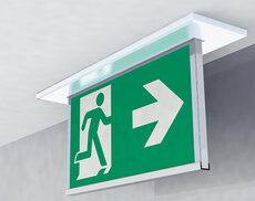Innovative Kunststoff Rettungszeichenleuchte für Universalmontage. Geeignet zur ein- oder zweiseitigen Beschriftung.