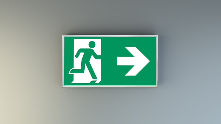 Automatische Überwachung der Sicherheitsleuchte mit SelfControl. Das gewünschte Piktogramm (Pfeil rechts, links, oben oder unten) ist standardmäßig im Lieferumfang enthalten.