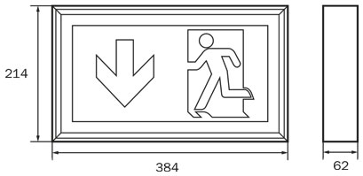 Automatische Überwachung der Sicherheitsleuchte mit SelfControl. Planungssicherheit ist durch werkzeuglosen, variablen Einsatz der Piktogramme vor Ort gegeben. Die Piktogramme entsprechend DIN ISO 7010 (Pfeil rechts, links, unten und oben) sind standardmäßig im Lieferumfang enthalten. Auf Anfrage kann die Beschriftung auch nach Kundenvorgabe erfolgen.