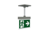 Modern zinc die-cast emergency exit sign luminaire with pendant for recessed mounting in the ceiling. With an installation diameter of 68 mm, this luminaire can be easily integrated into many environments. Escape and emergency routes can be identified on either one or two sides.