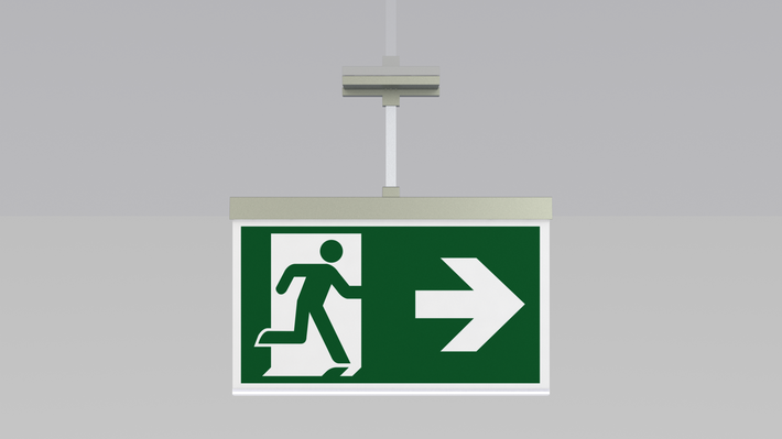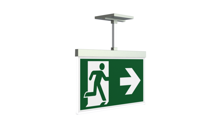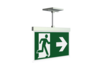 Modern zinc die-cast emergency exit sign luminaire with pendant for recessed mounting in the ceiling. With an installation diameter of 68 mm, this luminaire can be easily integrated into many environments. Escape and emergency routes can be identified on either one or two sides.