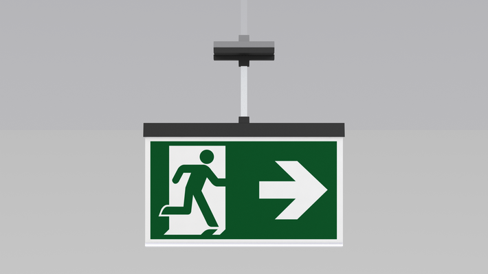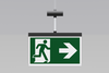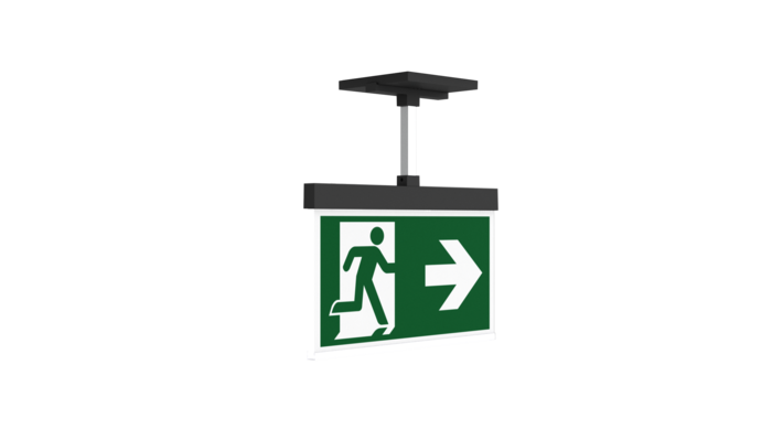 Modern zinc die-cast emergency exit sign luminaire with pendant for recessed mounting in the ceiling. With an installation diameter of 68 mm, this luminaire can be easily integrated into many environments. Escape and emergency routes can be identified on either one or two sides.