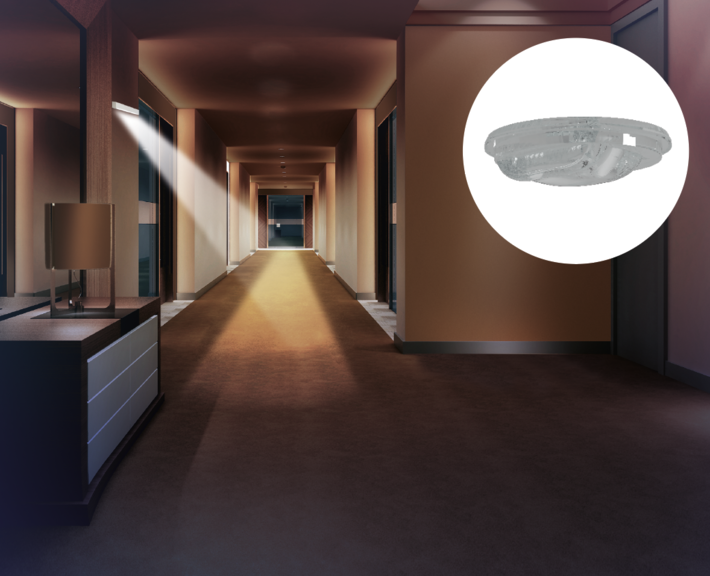 The wall-corridor lens directs the light to the center of the corridor in wall-mounted safety luminaires, with the LED beaming downwards