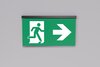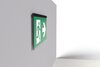Luminaire moderne à pictogramme de secours en zinc moulé sous pression pour montage mural encastré, pour la signalisation des issues de secours et des voies d’évacuation.