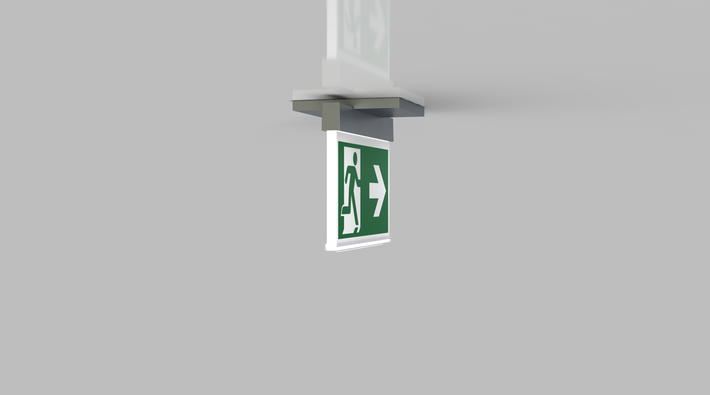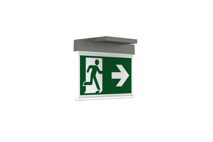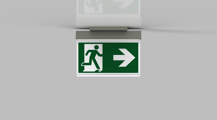 Surveillance automatique de la lampe de sécurité avec SelfControl. Impossible de se tromper lors de la planification grâce aux pictogrammes logiques imprimés. Les pictogrammes conformes à la norme DIN ISO 7010 (flèches à droite, à gauche et en bas) sont contenus dans la livraison standard. L’impression peut également être faite sur demande en fonction des prescriptions du client.