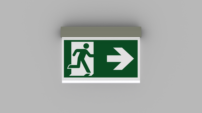 Surveillance automatique de la lampe de sécurité avec SelfControl. Impossible de se tromper lors de la planification grâce aux pictogrammes logiques imprimés. Les pictogrammes conformes à la norme DIN ISO 7010 (flèches à droite, à gauche et en bas) sont contenus dans la livraison standard. L’impression peut également être faite sur demande en fonction des prescriptions du client.