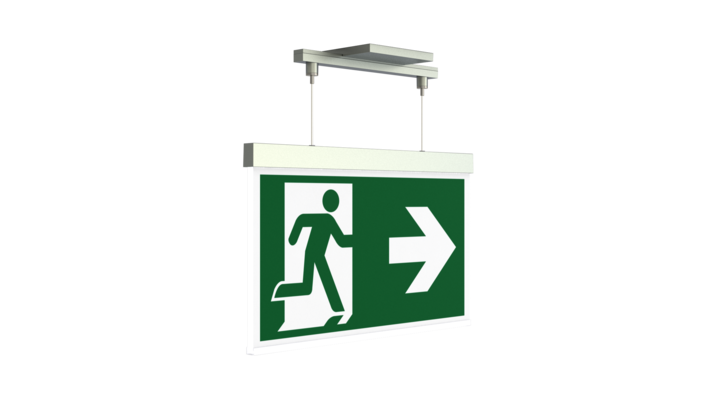 Luminaire moderne à pictogramme de secours en zinc moulé sous pression avec suspension par câble pour montage encastré au plafond. Grâce à son diamètre d’encastrement de 68 mm, ce luminaire s’intègre élégamment dans de nombreux environnements. La signalisation des issues de secours et des voies d’évacuation s’effectue au choix sur une face ou sur les deux faces.