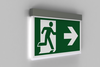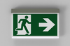 Luminaire moderne à pictogramme de secours en zinc moulé sous pression pour montage mural encastré, pour la signalisation des issues de secours et des voies d’évacuation.