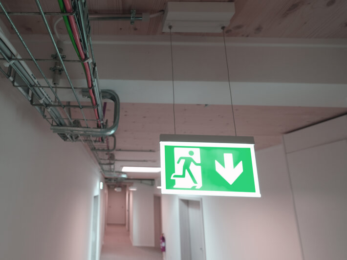 Commande et surveillance centralisées sans fil pour les grandes installations comptant jusqu'à 50 000 luminaires avec Wireless Professional. Impossible de se tromper lors de la planification grâce aux pictogrammes logiques imprimés. Les pictogrammes conformes à la norme DIN ISO 7010 (flèches à droite, à gauche et en bas) sont contenus dans la livraison standard. L’impression peut également être faite sur demande en fonction des prescriptions du client.