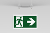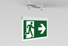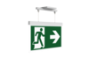 Luminaire moderne à pictogramme de secours en zinc moulé sous pression avec suspension par câble pour montage encastré au plafond. Grâce à son diamètre d’encastrement de 68 mm, ce luminaire s’intègre élégamment dans de nombreux environnements. La signalisation des issues de secours et des voies d’évacuation s’effectue au choix sur une face ou sur les deux faces.