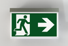 Luminaire moderne à pictogramme de secours en zinc moulé sous pression pour montage mural, pour la signalisation des issues de secours et des voies d’évacuation.