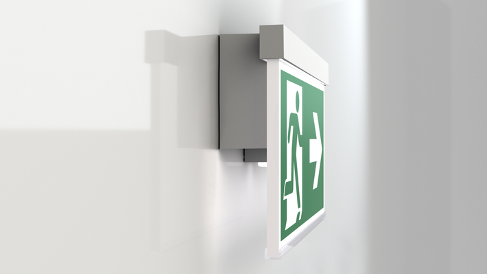Luminaire moderne à pictogramme de secours/de sécurité en zinc moulé sous pression pour montage mural et pour la signalisation des issues de secours et des voies d’évacuation. La technologie Duo assure, à l’aide d’une LED supplémentaire, la signalisation lumineuse des voies d’évacuation et des issues de secours en cas de panne de courant.