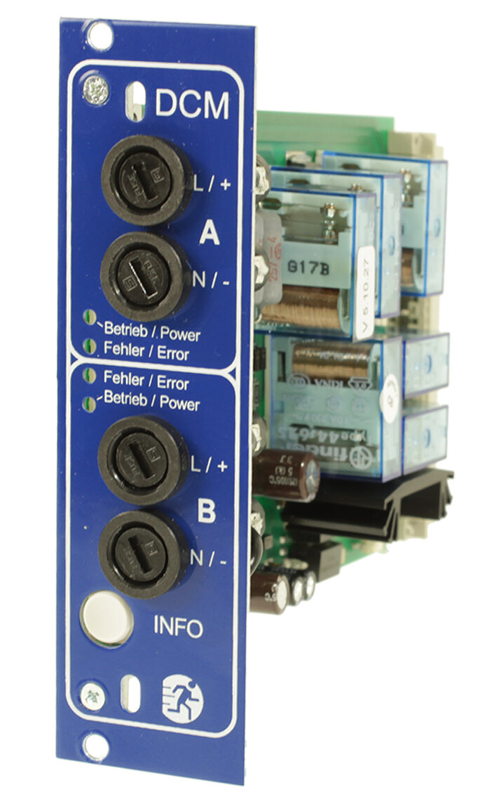 Les modules de circuit électrique DCM12E, DCM32, DCM42 et DCM62 sont des modules d'extension performants pour les systèmes d'éclairage de sécurité des séries multiControl plus, midiControl plus, miniControl XL plus, miniControl plus et microControl plus. Avec deux circuits électriques surveillés séparément, ils offrent une alimentation fiable avec un courant de sortie maximal de 1 A (DCM12E), 3 A (DCM32), 4 A (DCM42) ou 6 A (DCM62).