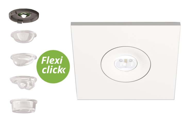La forme de construction compacte permet un montage dans une découpe au plafond de 68 mm. Outre les montages traditionnels d’encastrement au plafond, il peut également être monté dans des boîtiers conventionnels et anti-incendie. La fixation se fait aisément à l’aide de ressorts de serrage ou d’un système à vis dans la prise.