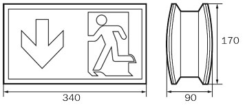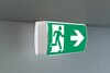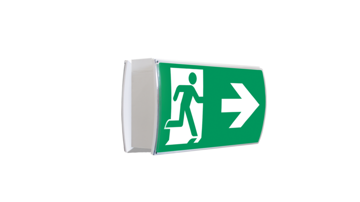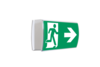 Luminaire à pictogramme de secours fin et convexe en plastique pour montage au plafond. Pour marquage monoface ou biface. Le set de pictogrammes est enfichable et se place à l’intérieur sans recours à un quelconque dissolvant pour adhésif.