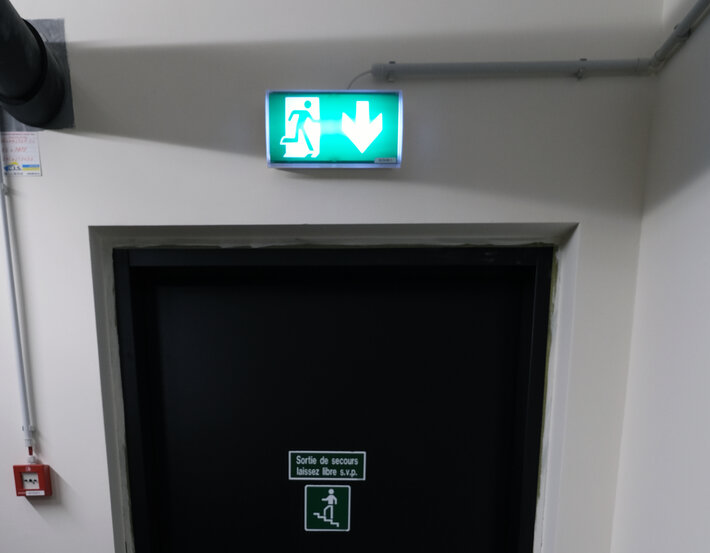 Commande et surveillance via un système d'alimentation électrique central. Impossible de se tromper lors de la planification grâce aux pictogrammes logiques imprimés. Les pictogrammes conformes à la norme DIN ISO 7010 (flèches à droite, à gauche et en bas) sont contenus dans la livraison standard. L’impression peut également être faite sur demande en fonction des prescriptions du client.
