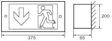 Luminaire à pictogramme de secours en métal encastré dans le mur.