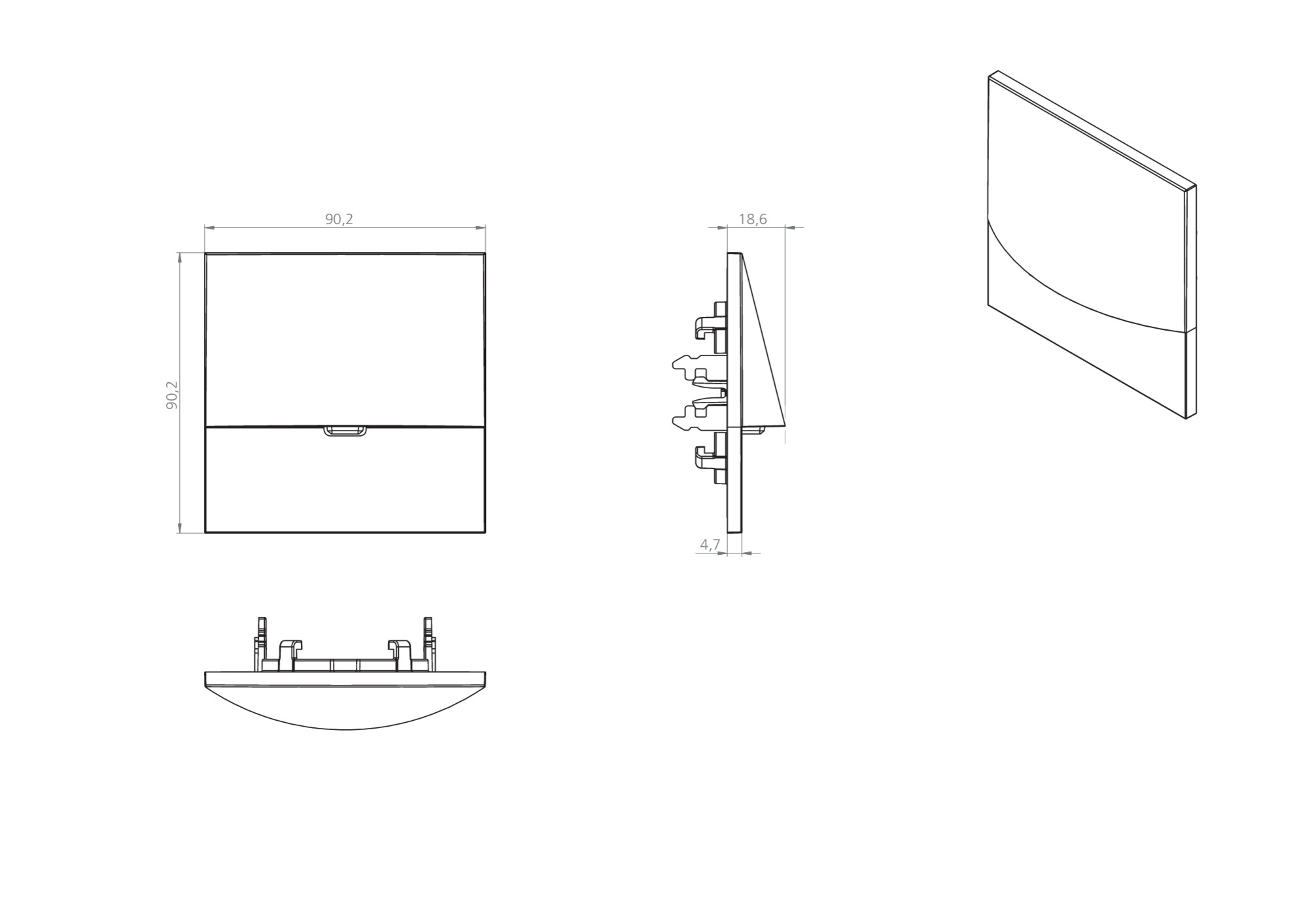Il est prévu pour un montage dans des boîtes d’interrupteur conventionnelles, le cadre de montage pouvant être aligné sur la boîte. L’écran en zinc moulé sous pression est monté sans fixation visible de l’extérieur.